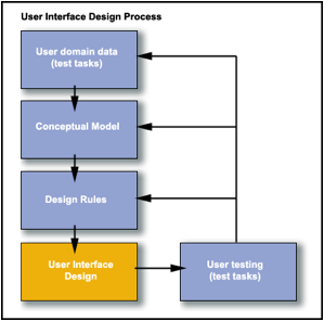 - Develop the user interface conceptual model. This model describes how the user will accomplish the task using the tools (objects) presented in the user interface. This system of objects, their associated properties, their inter-relationships, and the ways they are used to accomplish the goal establishes the conceptual model. The conceptual model design maps the elements of the current task model to the developer’s implementation model, which includes such items as software processes and memory management.